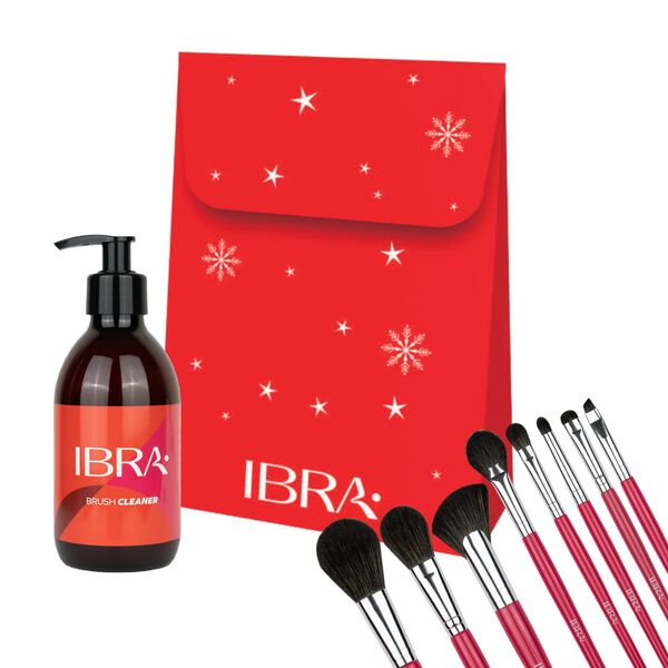 Zestaw świąteczny, który skradnie serca każdej miłośniczki makijażu, to perfekcyjnie skomponowany duet zestawu ośmiu różowych pędzli i żelu do mycia pędzli marki Ibra Makeup.